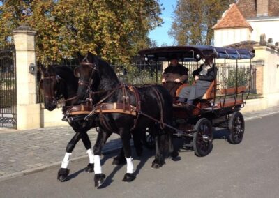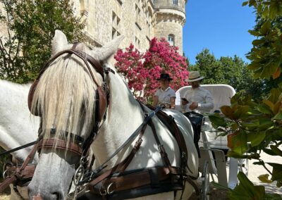 Offrez-vous une expérience romantique et authentique en vous promenant dans les rues pittoresques de Bordeaux à bord de l’une de nos calèches. Laissez-vous emporter par le charme de la ville tout en profitant du confort et du luxe d’une calèche traditionnelle.