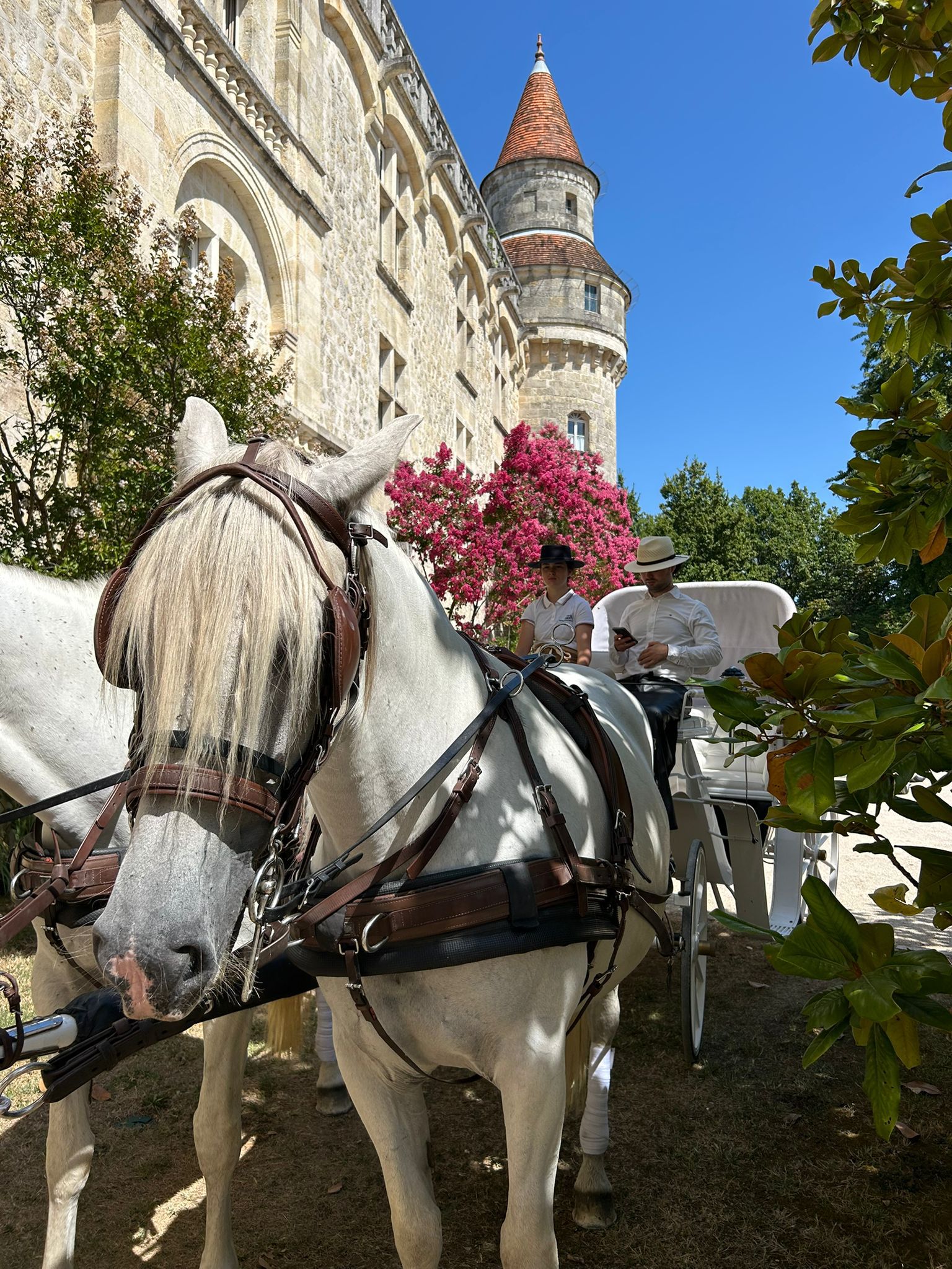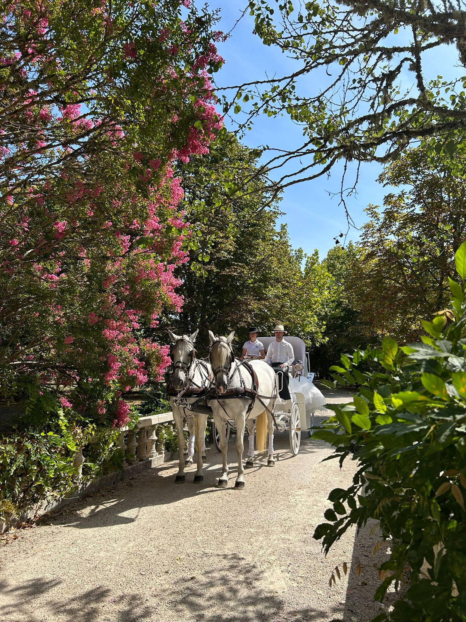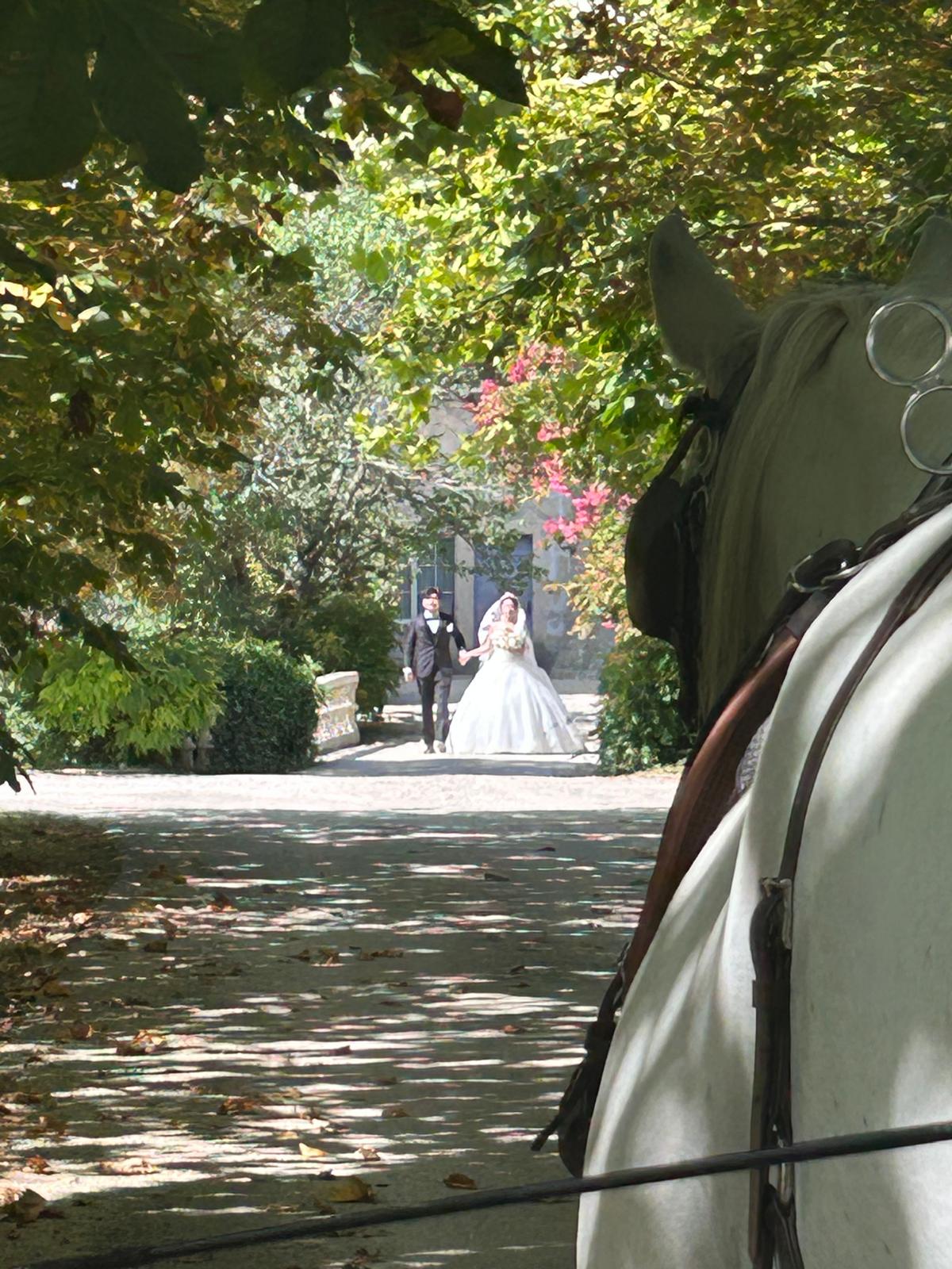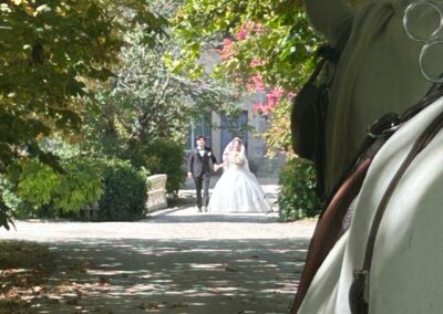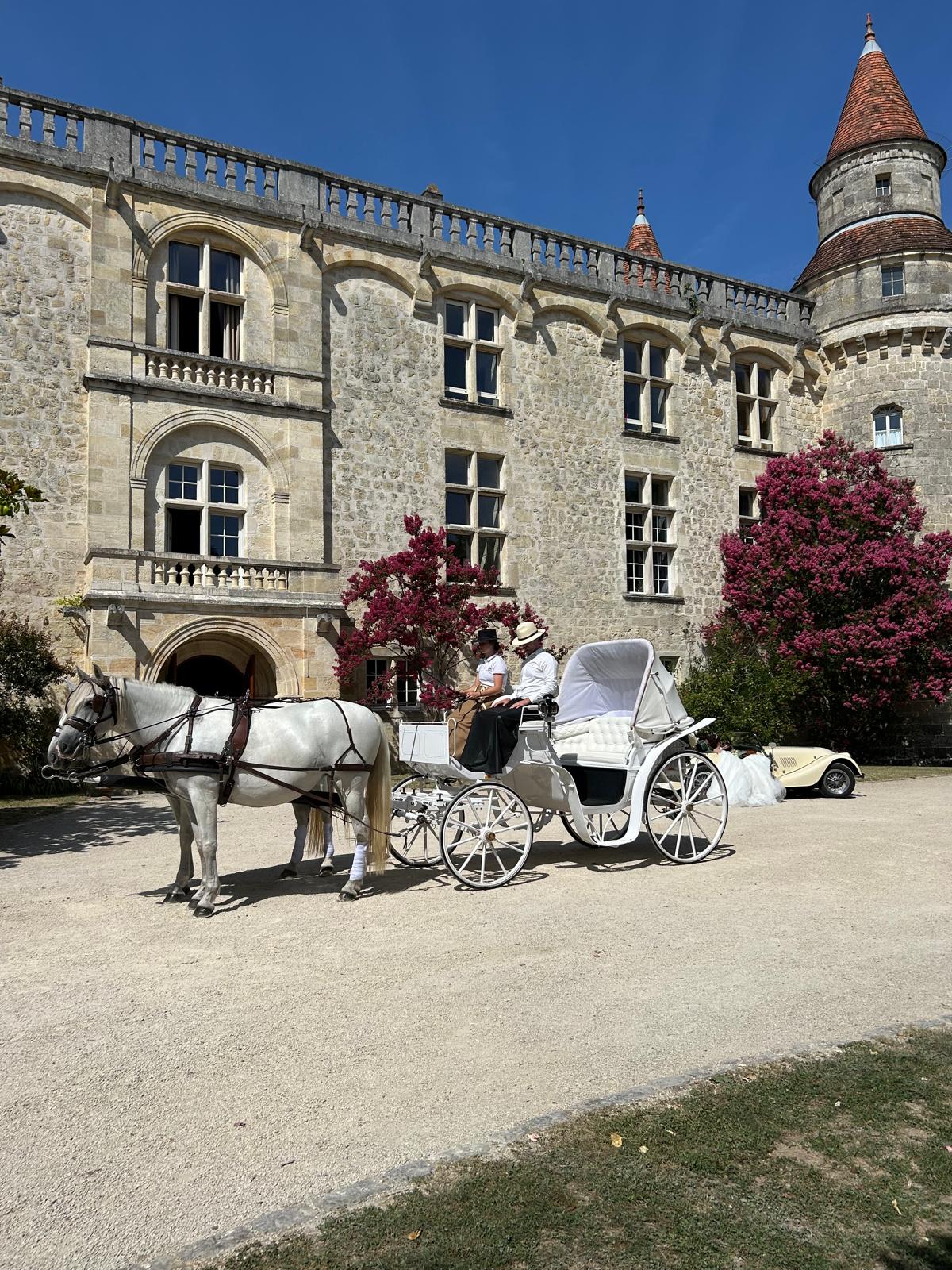 Faites une entrée remarquable et romantique à votre mariage à Bordeaux avec Location De Calèche Bordeaux.