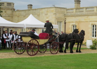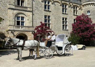 Créez des souvenirs durables en choisissant notre service de location de calèche pour votre mariage à Bordeaux. Que ce soit pour une cérémonie intime ou une grande réception, notre équipe veillera à ce que chaque détail soit parfait, vous permettant de vous concentrer sur ce qui compte vraiment: célébrer votre amour.